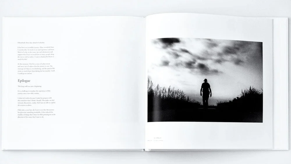 This book records this 3 months journey in photographs and a detailed written report that collects thoughts and encounters along the way. “When I resume my walk, I am aware that I move differently from the early days of this journey. I am aware of the wonderful smell of the forest, of the raindrops on my face, and of my feet hitting the ground with each step. I enjoy every day, but the days have started to flow together, and it is not easy to remember clearly whether I have been in a certain place two days ago or three.”